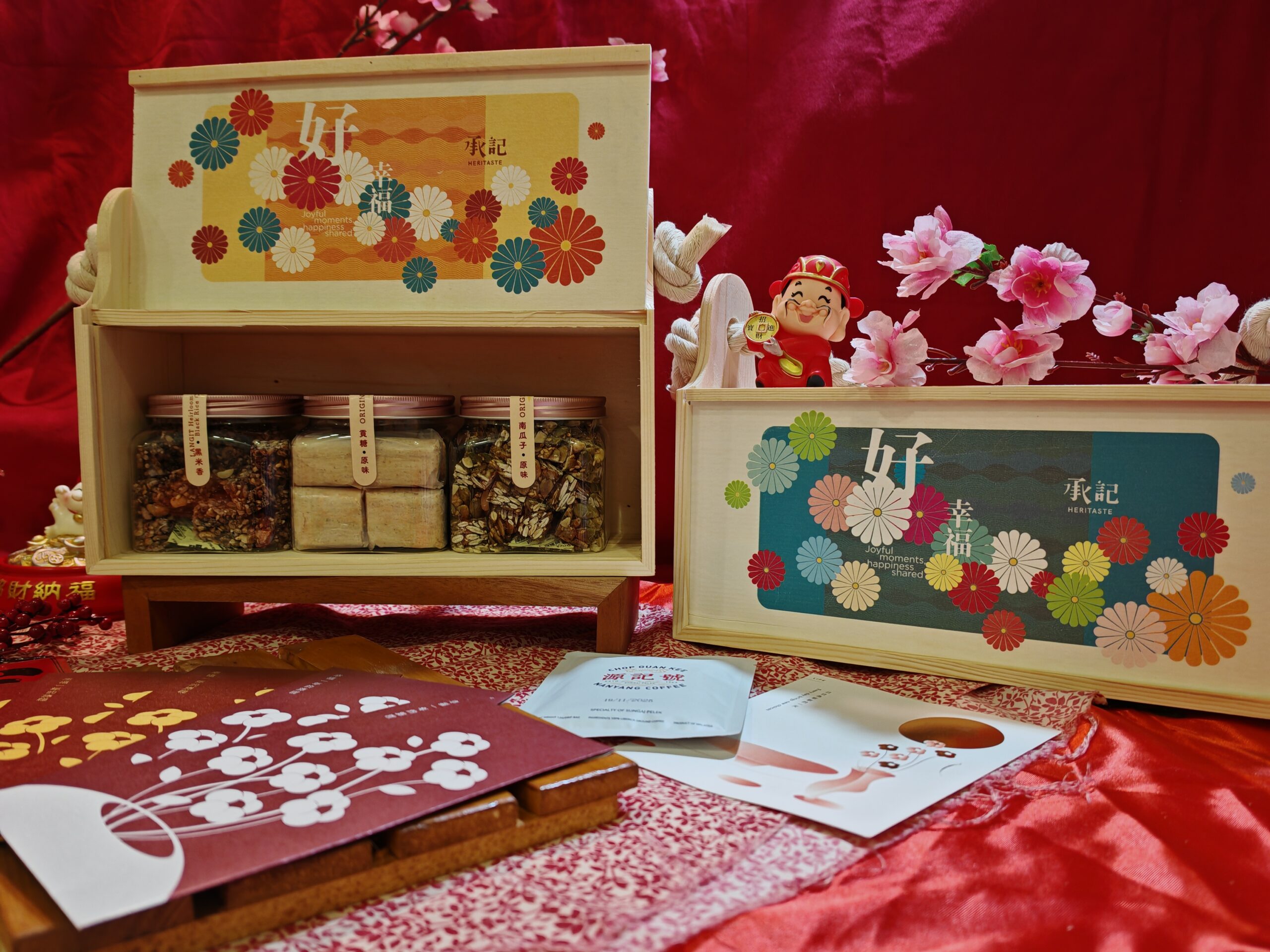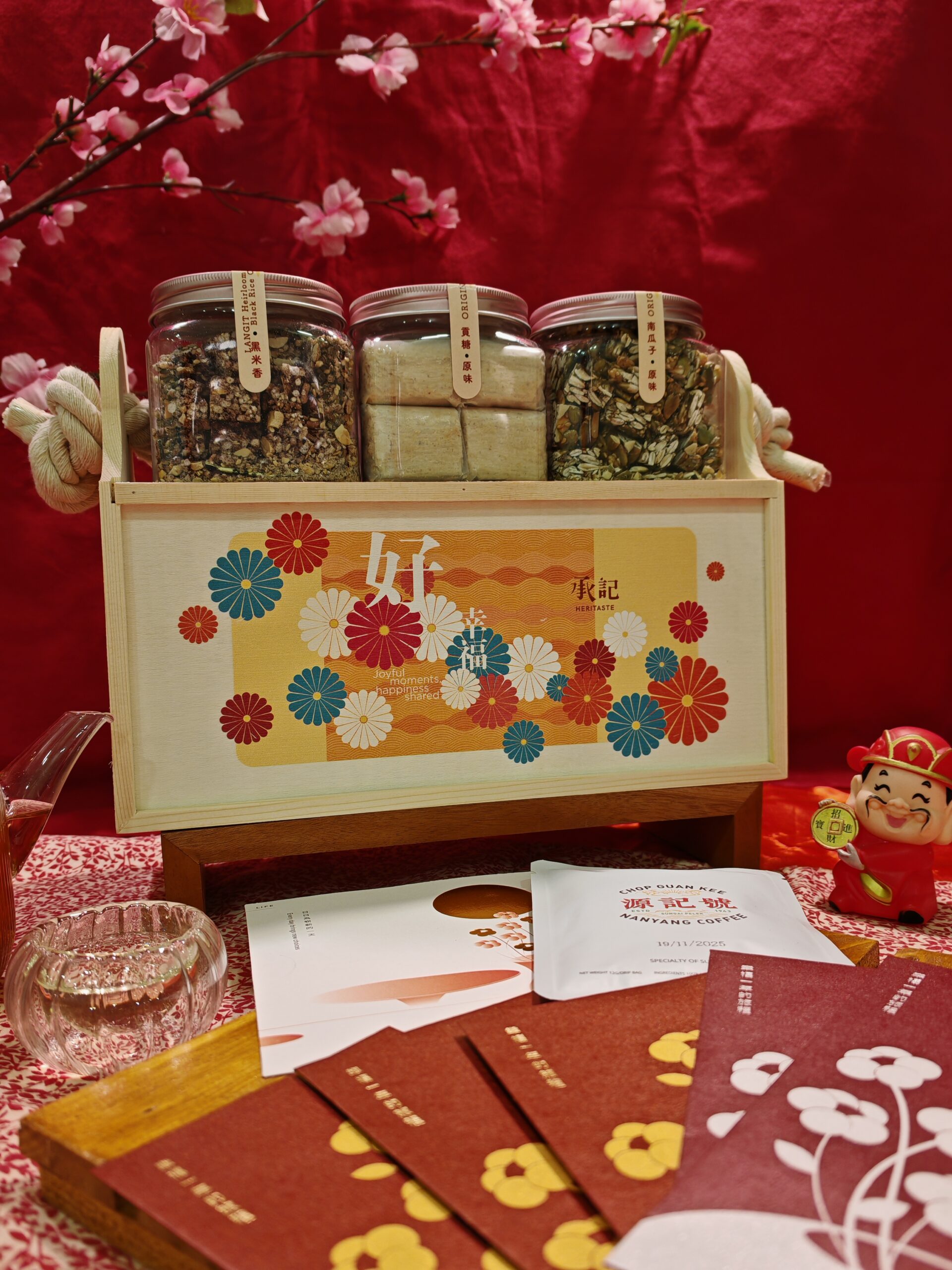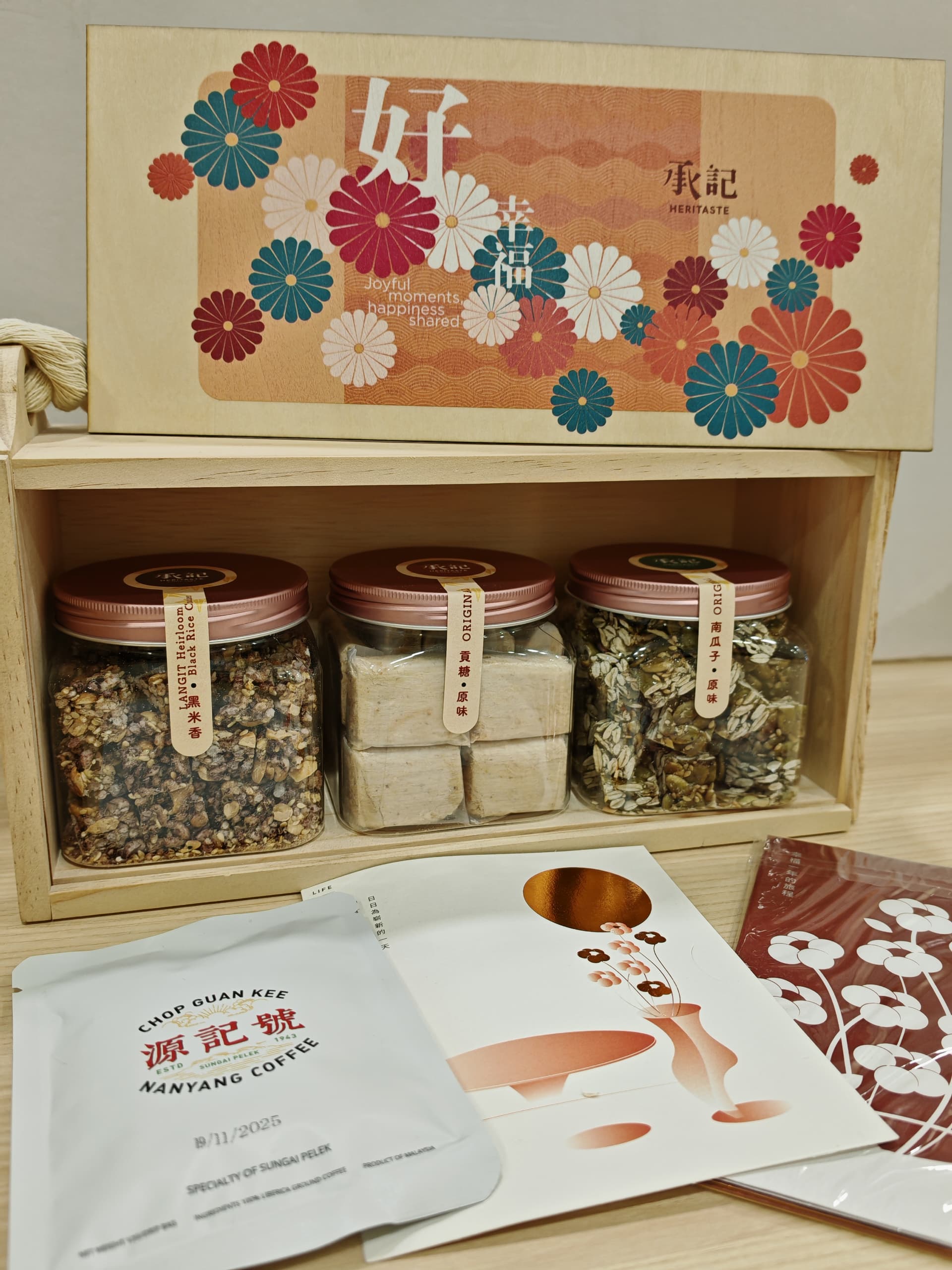 1.福禄寿礼盒 -里面有三罐不同口味(原贡,南瓜籽,黑米香)的承记产品 每一个都代表一个祝福